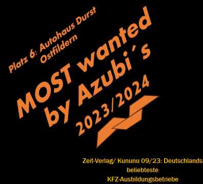 In Zusammenarbeit mit der Arbeitgeber-Bewertungsplattform kununu hat die ZEIT Verlagsgruppe das Ausbildungssiegel „Most Wanted Start“ entwickelt und für das Jahr 2024 die 500 beliebtesten Ausbildungsplätze in Deutschland ermittelt. Innerhalb der 10 Über- und 25 Unterkategorien finden vielleicht auch Sie ihren aktuellen, oder vielleicht zukünftigen, Ausbildungsplatz. Das Gesamtranking der beliebtesten Ausbildungsplätze finden Sie hier: https://www.zeit.de/angebote/most-wanted-start-2024/mobility-construction/automobil