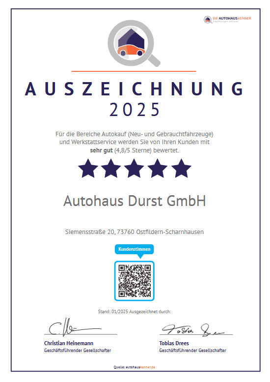 Für unsere Kunden bedeutet dies, dass sie im Autohaus Durst ein zuverlässigen Partner an ihrer Seite haben.